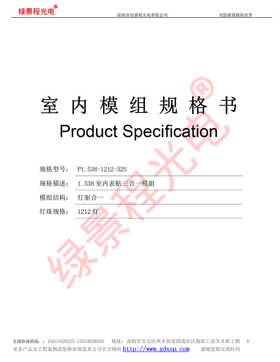 綠景程光電室內(nèi) P1.538-SMD1212-52S-320X160mm