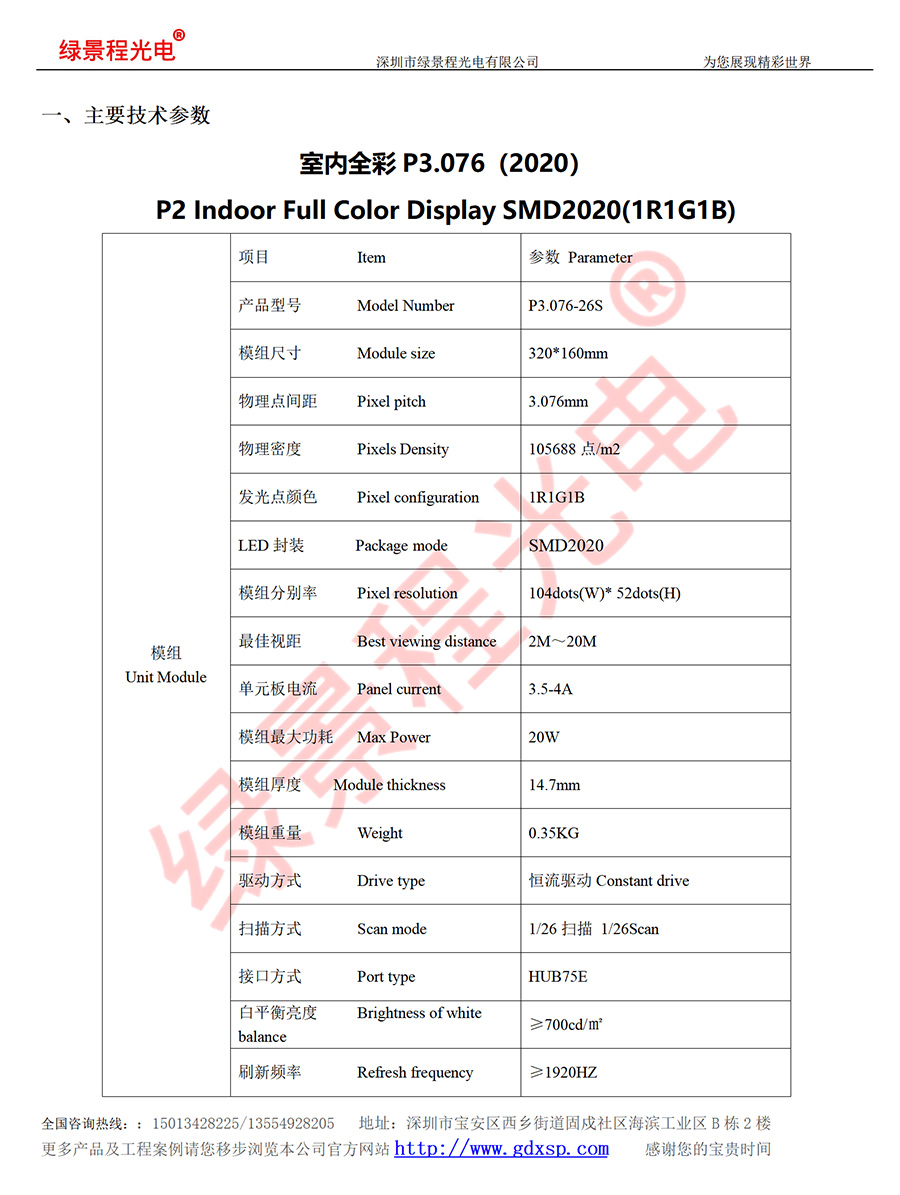 綠景程光電室內(nèi)P3.076-SMD2020-26S-320X160mm