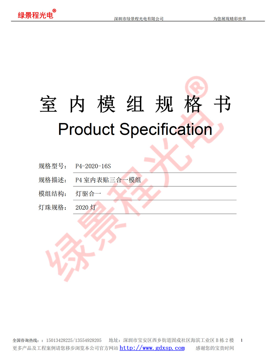 綠景程光電室內(nèi)P4-SMD2020-16S-256X128mm