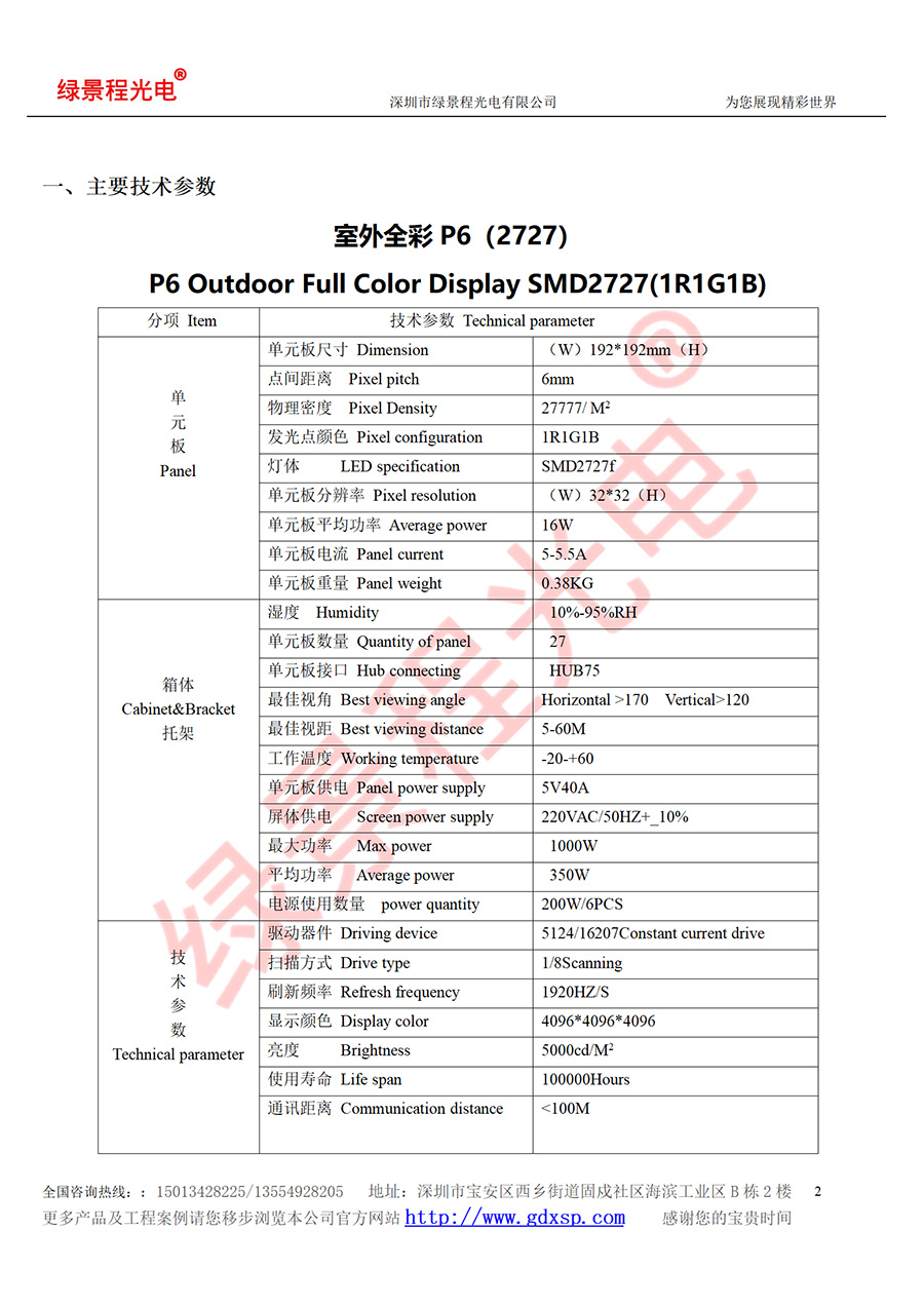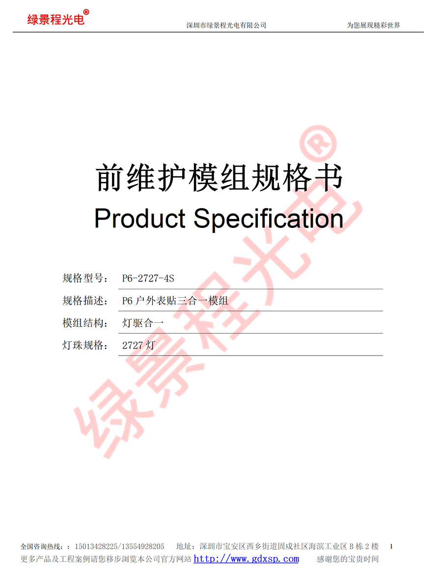 綠景程光電戶外前維護(hù)P6-SMD2727-8S-192X192mm