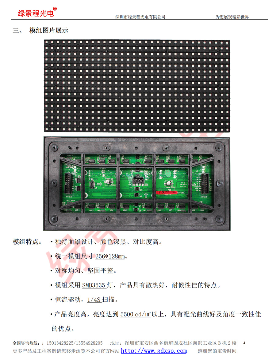 綠景程光電戶外前維護(hù)P8-SMD3535-4S-256X128mm